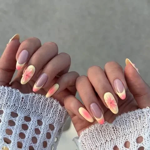 Летом невозможно обойтись без цветочного маникюра, и учитывая современные тенденции, он должен быть объёмным. Данный рельефный дизайн в стиле нежно-розового малинового или клубничного лимонада создаётся с помощью аэрографа или более удобной техники нанесения губкой.