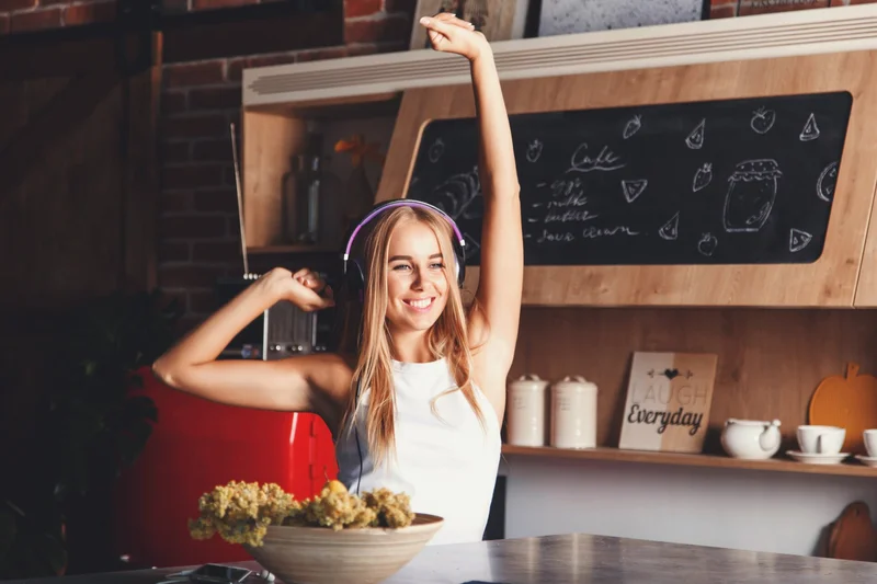 Девушка танцует на кухне. Источник фото: 123rf.com